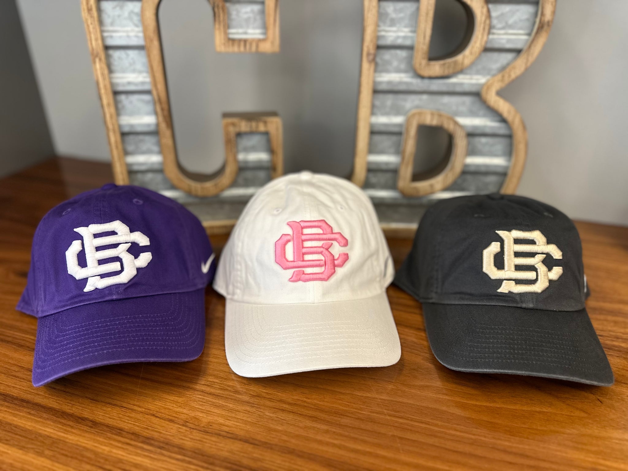 Nike Team Heritage ball cap with adjustable back. Pewter or purple with white embroidered CB logo.